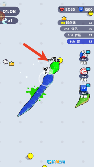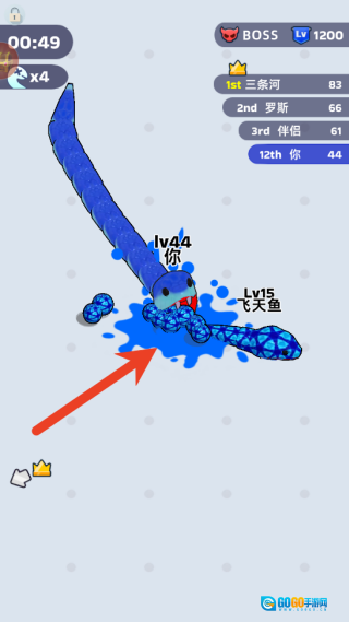 3、需要巧妙地移动位置,灵活避开所有等级更高的大蛇,避免被它们咬到头部。