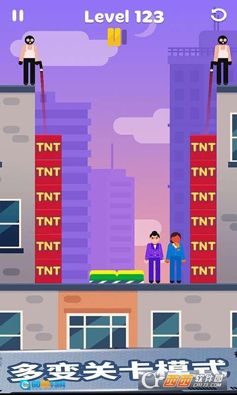 1、设有多个难度各异的关卡,能为你带来超多欢乐,你需要灵活行动,拯救老铁的生命。