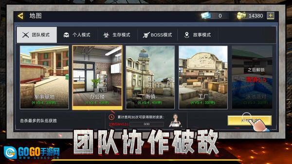 1、团队协作对抗与目标争夺玩法,玩家需要和队友相互配合,在歼灭模式、据点占领模式等不同规则下达成特定目标以获取胜利。