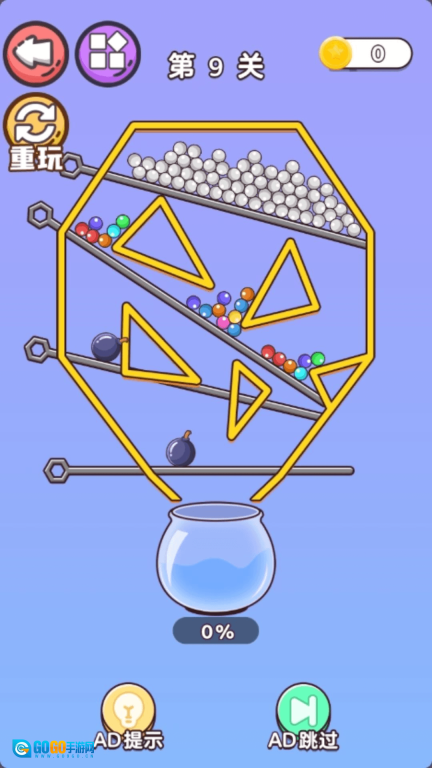 1、简单操作与策略思考并存:核心玩法是将球投入瓶中,基础操作十分简便、易于掌握,不过随着关卡难度提升,就需要玩家去考量投掷的角度和力度,以及球与球之间、球和瓶子之间的相互作用关系。
