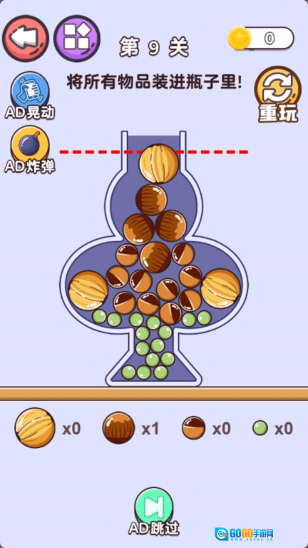 3、成就感与挑战并存:每个关卡的难度都设定得恰到好处,看似触手可及却又需要付出努力才能完成。从一开始轻松地把球塞进去,到后面需要绞尽脑汁将最后一个球塞进已经装满球的瓶子里,每一次成功都能带来强烈的成就感。