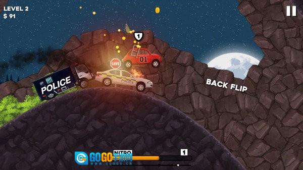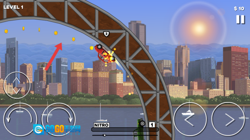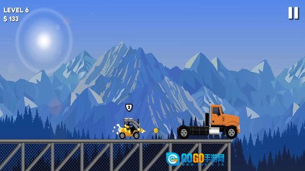2、开到拱桥处时,要找准时机去收集空中的金币,同时通过操作来保持车辆的平衡,从而顺利驶过拱桥地形。