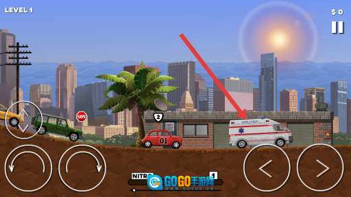 1、关卡开始时,操控车辆出发,注意场景中的AMBULANCE救护车等障碍物,平稳起步开启比赛。