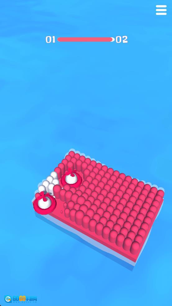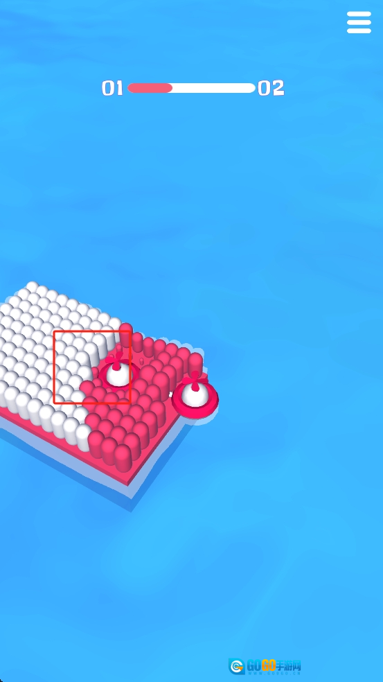 1、点击下方按钮启动关卡,留意带有装饰的白色圆片所在位置,待红色区域开始蔓延时,引导红色逐步将白色小球矩阵覆盖。