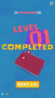 3、完成当前关卡后,点击下方按钮即可进入下一关。新关卡会设置更复杂的白色小球矩阵布局,你需要继续优化红色覆盖范围以及圆片的滚动策略。