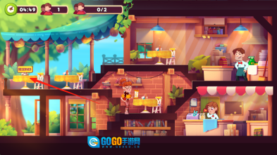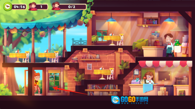 2、顾客依照箭头指引到桌后,为其递上菜单并协助点餐,以此推进【0/2】的顾客接待进度。