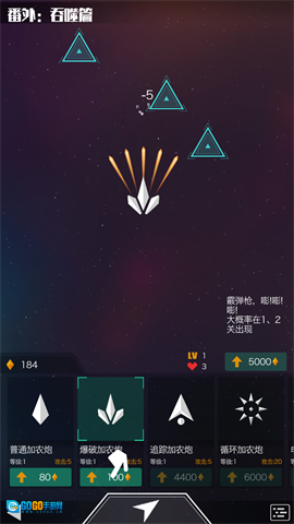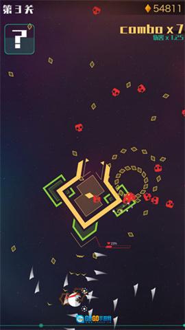 2、吞噬敌人的弹幕能够积攒能量,从而提升自身能力。但要留意躲避骷髅和敌人,不然会消耗生命值,毕竟你总共只有三条命。