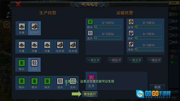 5、添加操作完成后,点击提交执行按钮,托管功能即可生效,之后建筑升级与征兵任务都会自动开展。