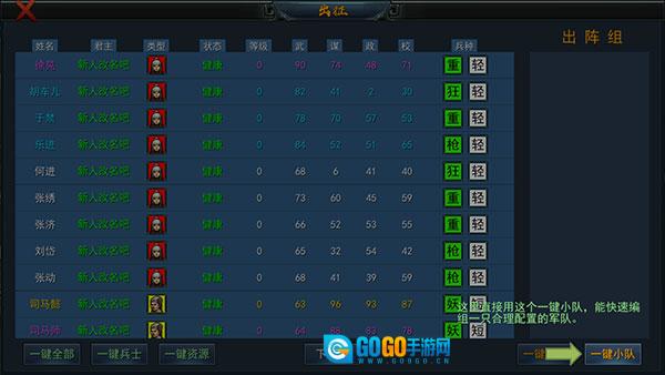 4、招募完成后,进入【军团编组】界面,手动把新招募的武将添加到编组队伍里。