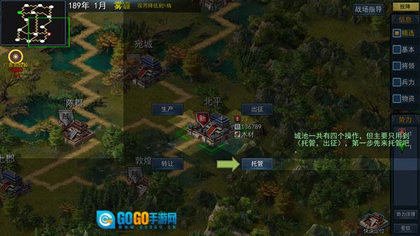 2、进入战役后,点击己方城池即可打开操作菜单。