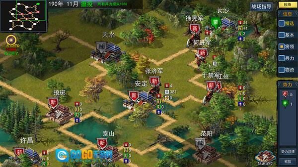 2、三国地图采用精心设计,玩家可自由选定出生地,并自主规划征战的路线方向。