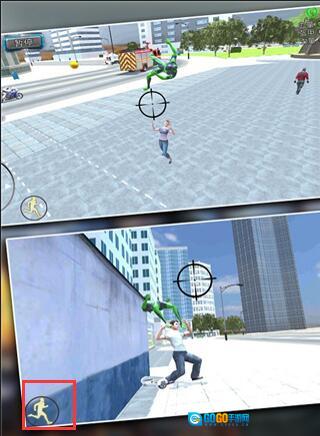 4、右下方的爆炸键位,瞄准建筑物时能让你飞檐走壁,瞄准敌人时则可发起攻击。