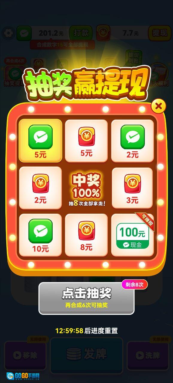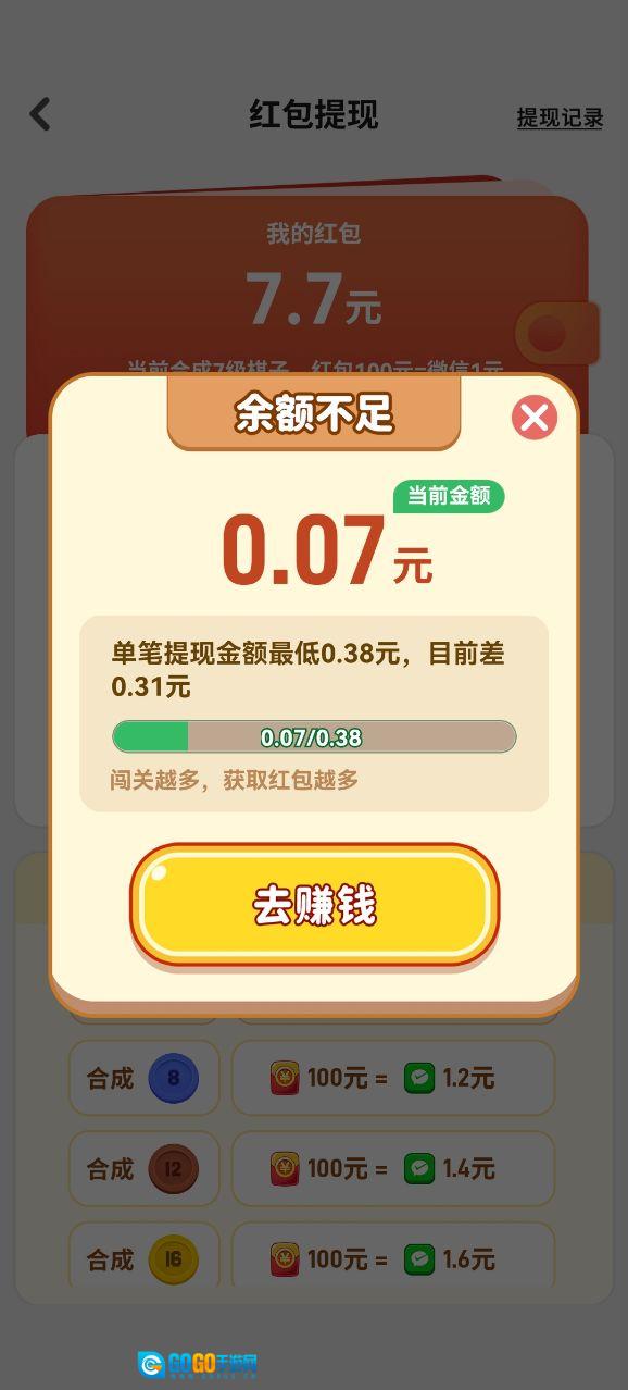 2、初始兑换比例设定为1%,当合成数字8时,比例提升至1.2%;合成数字12时,比例进一步上调至1.4%。兑换比例越高,最终到账的金额也就越多。
