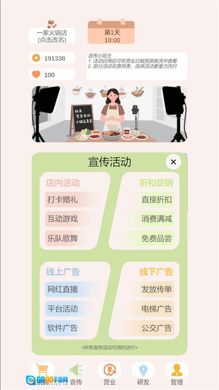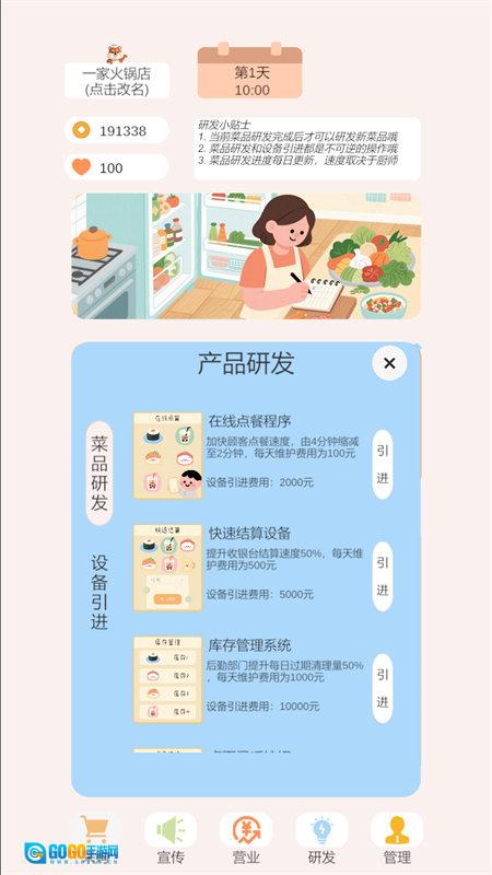 2、随着等级的不断提升,玩家能够获得扩展业务版图的契机,例如新增外卖服务、开拓连锁分店或是搭建线上订餐平台,进而一步步完成从个人小店铺到品牌化企业的转变。