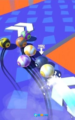 2、挑选最适配的赛道前行,搜集游戏里的各类道具,助力你的球球能以最迅速的速度向前推进