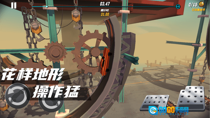 1、通过虚拟按钮轻松控制,实现各种特技飙车动作