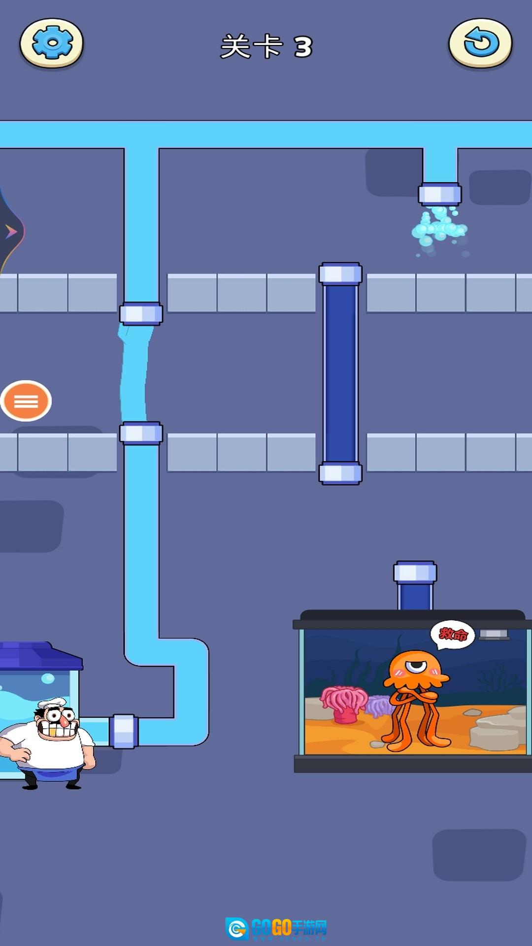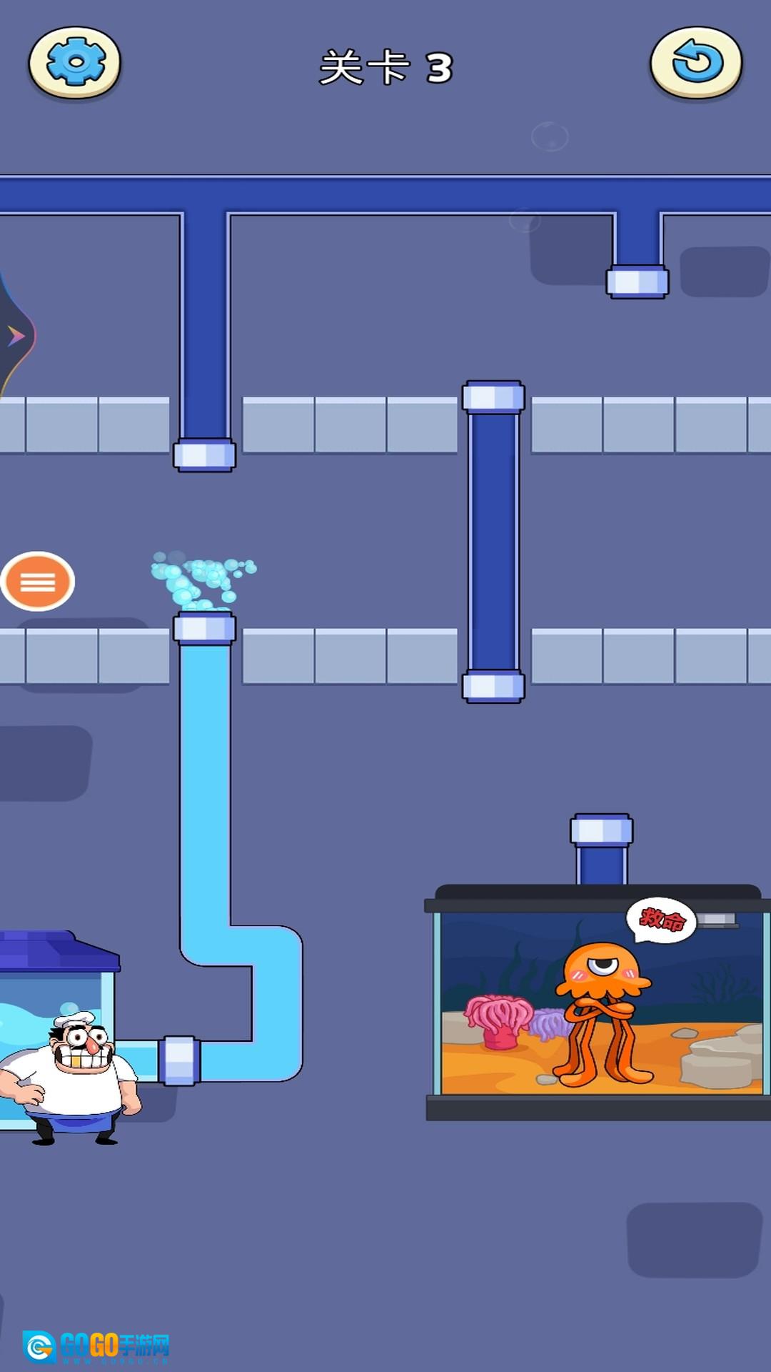 2. 明确任务目标:玩家要引导水流从水箱精确地连接到浴室,保证章鱼角色能获得稳定的水源来完成洗澡动作。