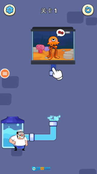 2. 如下图所示,我们在这一关卡中的目标是连接水箱和章鱼的浴室,使水流能够顺利注满章鱼的浴室。