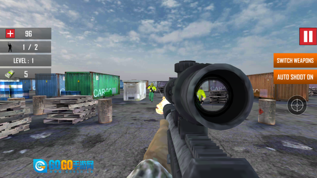 2、选定关卡后即可开启战斗,借助瞄准镜锁定目标敌人,利用武器进行精准射击,清除场景内的所有敌人,完成击败敌人的任务以解锁并推进至下一个关卡。