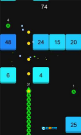 2、当蛇的身体慢慢变长后,要更灵活地滑动手指来避开自身和场景边缘,在吃球的过程中主动去撞击砖块,以此获得更多的球和更大的活动空间。