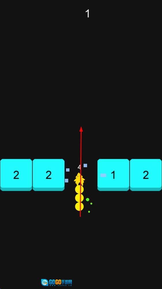 1、启动游戏后,在初始场景里看到贪吃蛇和散落各处的小球,通过滑动手指来操控蛇身移动方向,先吃掉第一个小球让蛇身稍微变长一点,接着试着去触碰周边的砖块。