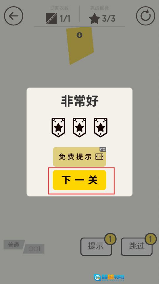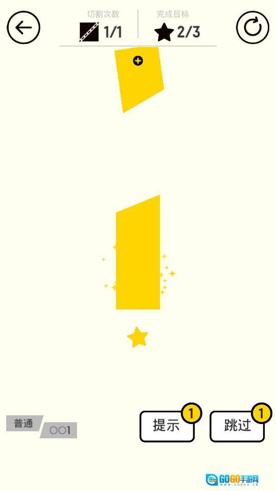 3、当你成功收集到所有星星后,点击下一关,就能开启全新的切割解谜挑战,去尝试更多富有创意的切割方式。