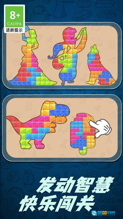 2、别具一格的碎片机制:每一块拼图都由算法打造出独一无二的轮廓形态,数千个关卡中不存在重复的组合方式。部分特殊碎片还融入了立体纹理的设计巧思,能进一步增强触觉层面的反馈感受。