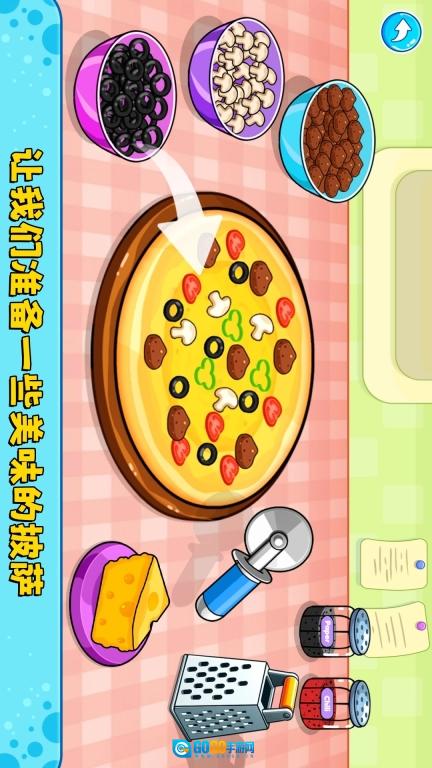 制作披萨的步骤是:先挑选合适的面饼,接着均匀涂抹酱料,再依次摆放各类食材,最后使用专用工具进行切割,这样一份披萨作品就完成了。
