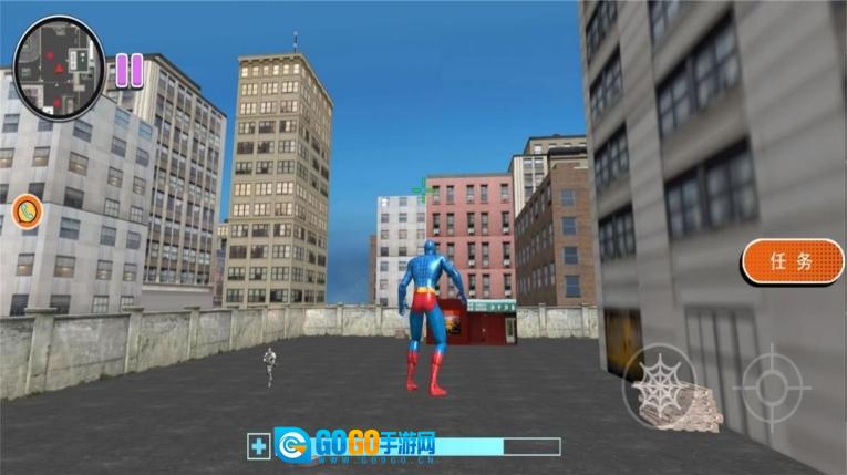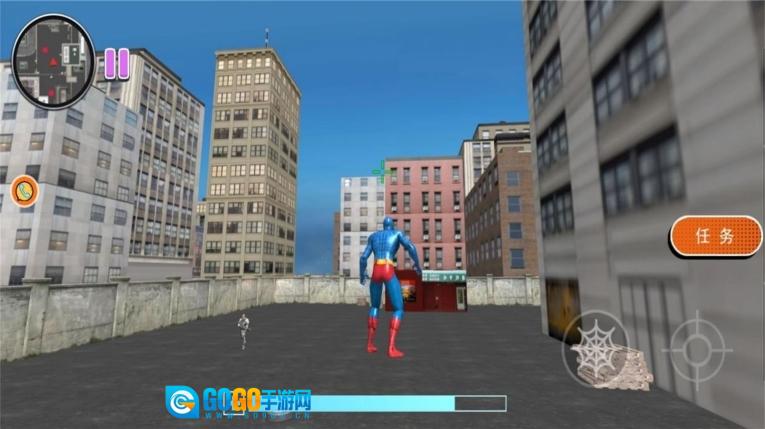 1、在变形英雄生存游戏里,请展现你的飞行绳索技能,穿梭于城市之间,抵达城市中的高楼。