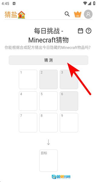4、在Minecraft猜物挑战里,按照合成配方的思路,点击猜测按钮提交你推测的物品,借助线索来锁定目标物品。