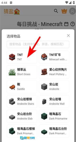 3、每日挑战-Minecraft选物品时,在列表里找到TNT选项并点击,就能选择该物品参与对应的挑战环节。