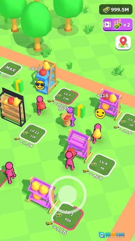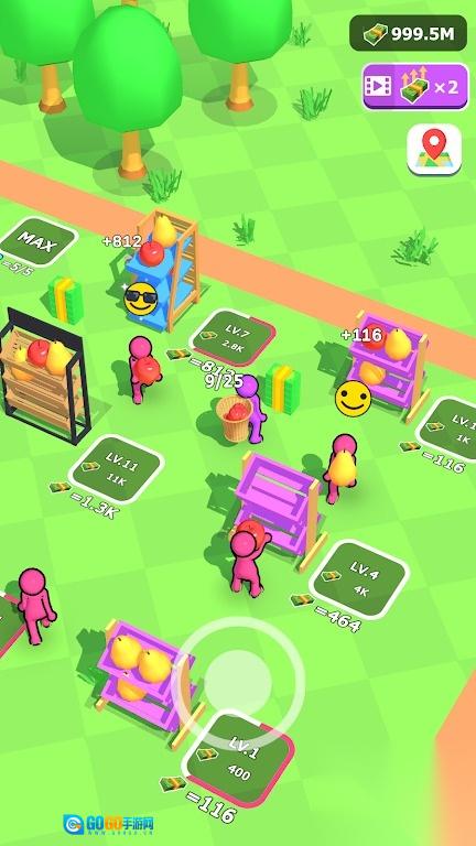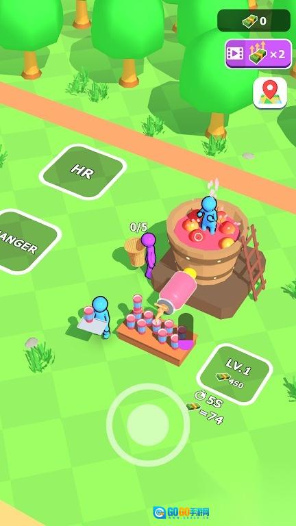 赚取金币后,你可以雇佣更多员工帮忙采摘和运输水果,还能对榨汁机进行升级,这样就能加快生产速度了。