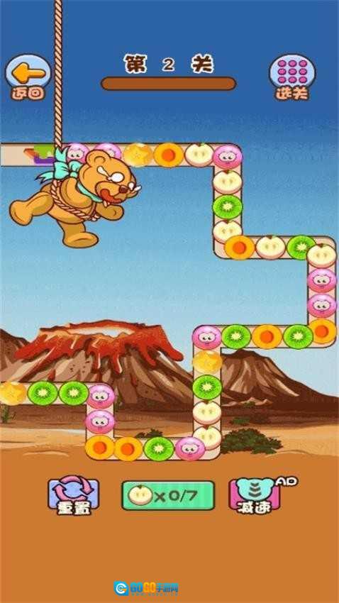 4、可爱视觉风格:Q版玩具熊与缤纷水果构成的画面,打造出轻松愉悦的游戏氛围。