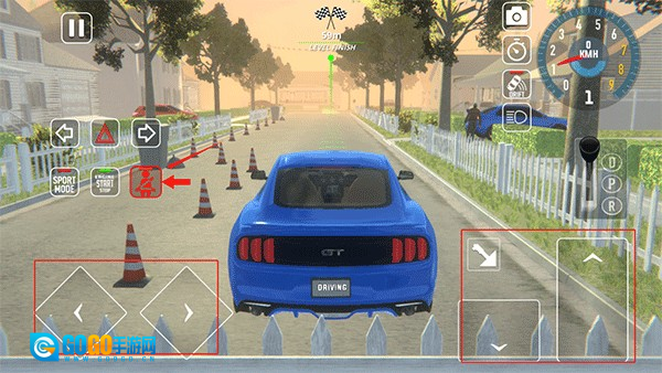 2、驾驶前请先系好安全带,之后通过左下角的按键来控制汽车的方向,右侧的按键则用于操控汽车的停止、前进等操作。
