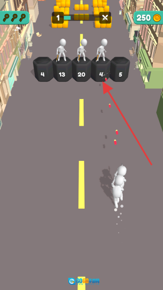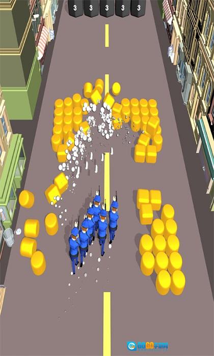 2、碰到带有数字标识的黑色桶时,桶上的数字表示需要攻击多少次才能将其击破,建议优先攻击有敌人站在上面的桶,这样既能消灭敌人,也能清除障碍。