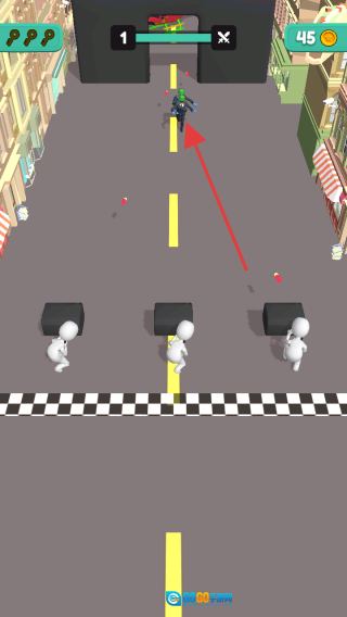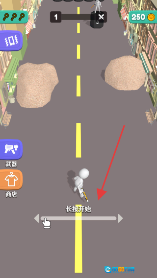 1、游戏开始后,长按开始按钮来操控角色前进,要留意避开道路上的石块之类的障碍物。