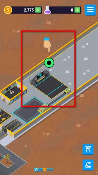 2、点击场景里的互动标识,进入建筑内部区域,解锁工厂对应的功能模块,开启后续的生产或升级操作,拓展经营维度。
