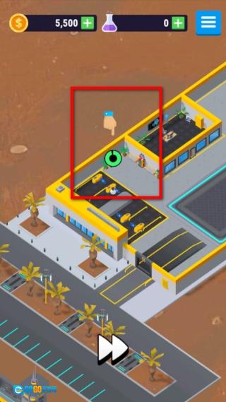 1、通过操控界面按钮切换不同的场景区域,在各区域中进行探索,寻找能够互动的车辆等元素,以此推动工厂相关的经营流程,逐步积累初始资源。