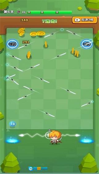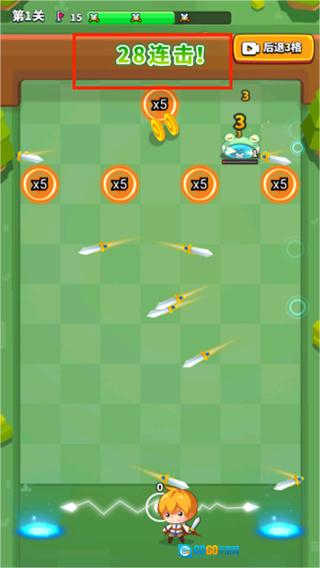 无敌弹一弹是一款以消除为核心玩法的休闲益智闯关游戏。它的玩法和弹球打砖块类似,玩家需要操控发射器的方向,通过屏幕上的虚拟预测线来判断弹道,松开手指就能发射飞刀攻击场上的怪物。要是击中特定圆球,还能让飞刀数量翻倍,触发全屏特效。随着关卡推进,难度会逐渐提升,后期还会出现特殊怪物。闯关时会随机刷新穿透弹、分裂球等道具,让玩家能更畅快地体验游戏乐趣。