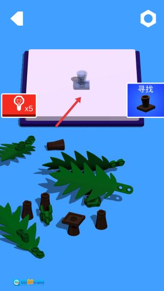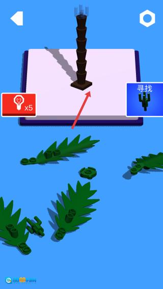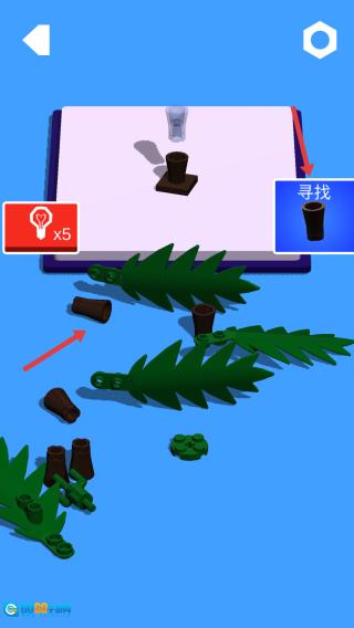 2、接着按照寻找提示,把其他棕色积木一一收集起来,再依次摆放到平台上,逐步搭建好结构。