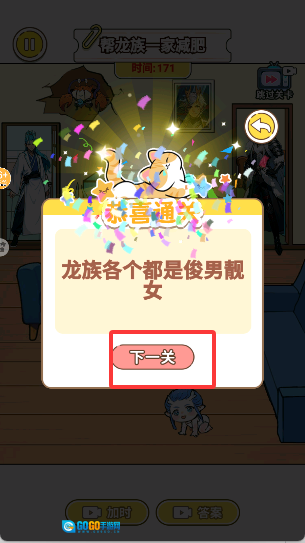 4、当把所有呼啦圈都用完之后,就能通过当前关卡,接着点击下一关按钮就可以继续游戏啦。