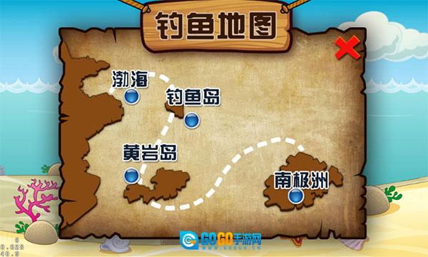 2、整体分为四个地点,对应四个关卡,具体是渤海、钓鱼岛、黄岩岛、南极洲这四个钓点,需完成当前关卡的任务,才能解锁下一个地点。