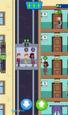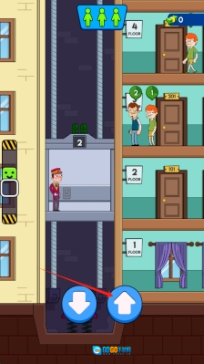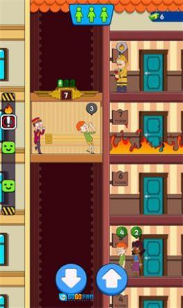 2、在游戏过程中,你需要依据人物当前所处的楼层,通过点击上下方向按钮来精准操控电梯的移动,从而安全地将人物运送至目标位置,完成运送后点击传送电梯即可。