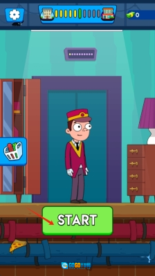 1、进入游戏启动界面后,点击START选项,即可开启电梯模拟的趣味挑战,随后点击按钮就能开始游戏。