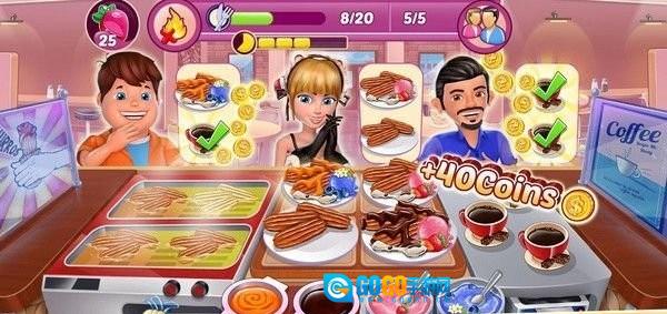 1、用心经营赚取金币,积累到一定数量后就能解锁下一家餐厅,同时还能解锁更多种类的食物。