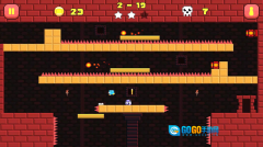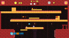 基础规则上,每个关卡内设有检查点,会自动进行存档,若挑战失败可从最近的存档点重新开始;玩家收集金币能够解锁新角色,完成特定成就还可获得额外奖励。基础操作方面,左侧的暂停键用于把控游戏节奏,右侧的跳跃键则负责控制跳跃高度。建议优先在陷阱前方按下暂停,仔细观察陷阱规律后,再规划合适的跳跃时机。