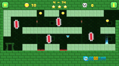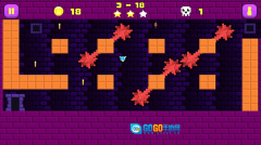 核心玩法设定为角色持续自动向前行进,玩家操作仅需通过点击屏幕左侧实现暂停、点击右侧触发跳跃(长按可控制跳跃高度),依靠精准的暂停与跳跃操作组合,避开尖刺、深坑、火球、旋转电锯等各类陷阱,最终抵达关卡终点即可通关。