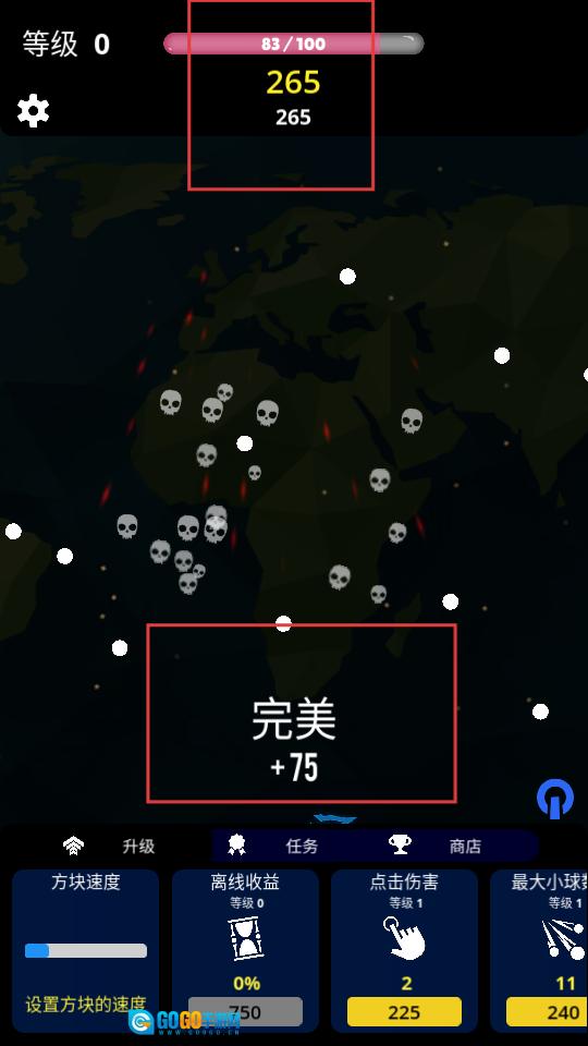 1、借助下方的升级区域,花费对应的资源来强化方块速度、点击伤害等各项属性,以此让方块消除的效率更高,从而顺利推进关卡进度。