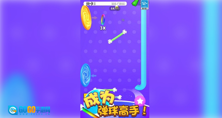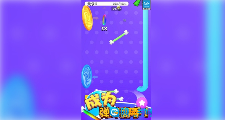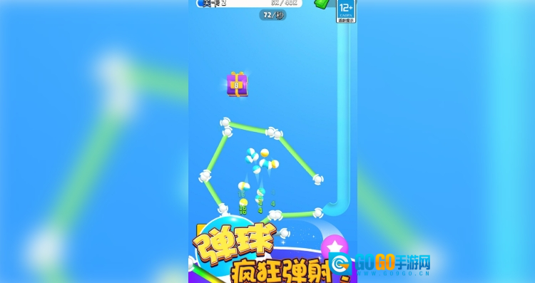 3.借助物理弹射的特性,使弹球在关卡里滚动前进,完成一系列挑战。