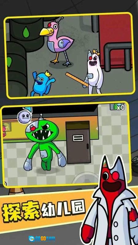 3、彩虹怪物设定:怪物的外形兼具童趣感与诡谲感,不同的怪物有着各自独特的移动模式和攻击手段,玩家需要通过观察它们的习性来制定对应的躲避方案,以此增强游戏的压迫感。